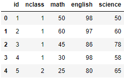 - 4장에서 사용한 exam.csv파일을 활용해 데이터를 파악하는 방법을 알아보겠음.