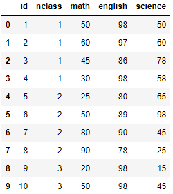 exam.head(10) # 앞에서부터 10행까지 출력