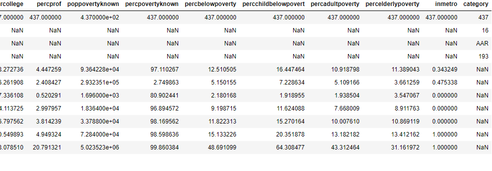 - describe()를 실행해 출력되는 요약 통계량은 다음과 같은 의미를 가짐.