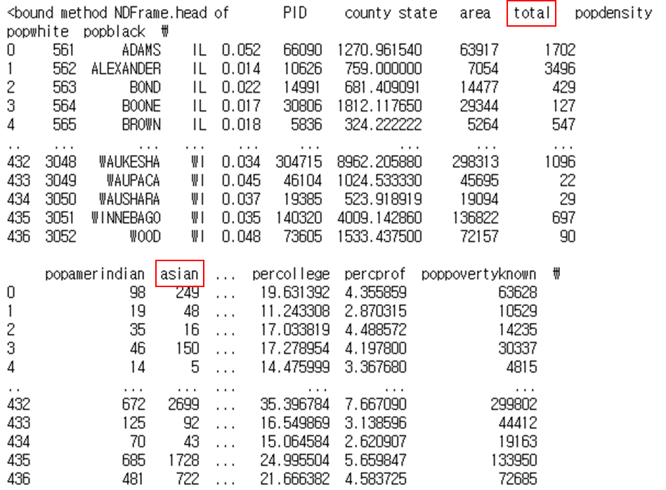 - midwest.csv는 437개의 행과 11개의 열로 구성됨.