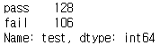 count_test = mpg['test'].value_counts() # 빈도표 만들기