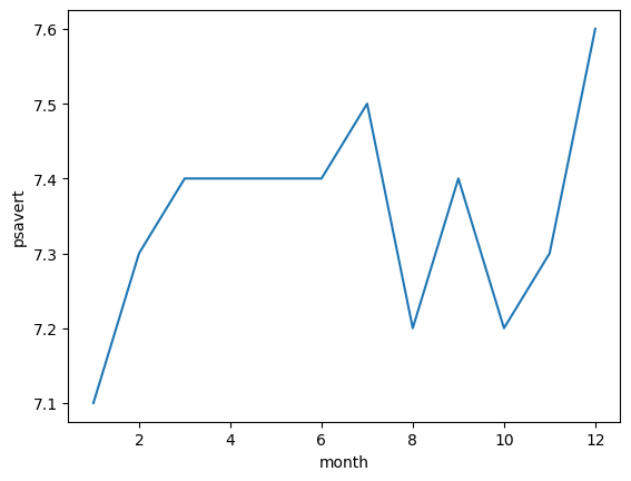 sns.lineplot(data = df_economics, x = 'month', y = 'psavert', ci = None)