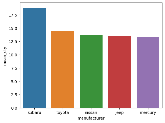 df_mpg = df_mpg.sort_values('mean_hwy', ascending = False)