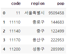 tip) Population_SIG.csv는 국가통계포털 KOSIS의 '주민등록인구현황' 데이터를 가공해 만들었음.