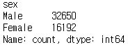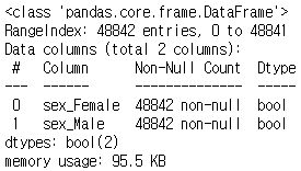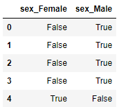 df의 sex를 추출해 원핫 인코딩하는 방법을 알아보겠음. 다음 코드의 출력 결과를 보면 df_tmp의 sex는 'Male' 또는 'Female'로 되어 있는 문자 타입 변수임.