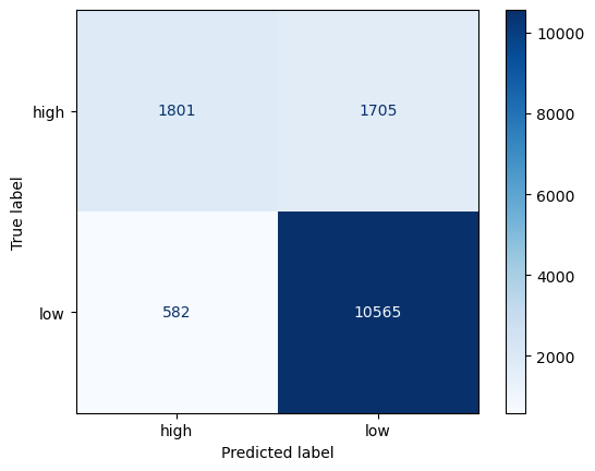 모델이 12,270명(1,705 + 10,565)을 low로 예측했음.