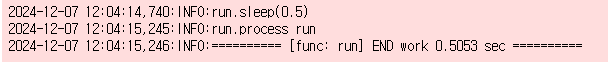 logging.info(f"========== [func: {func.__name__}] END work {time() - now:.4f} sec ==========")